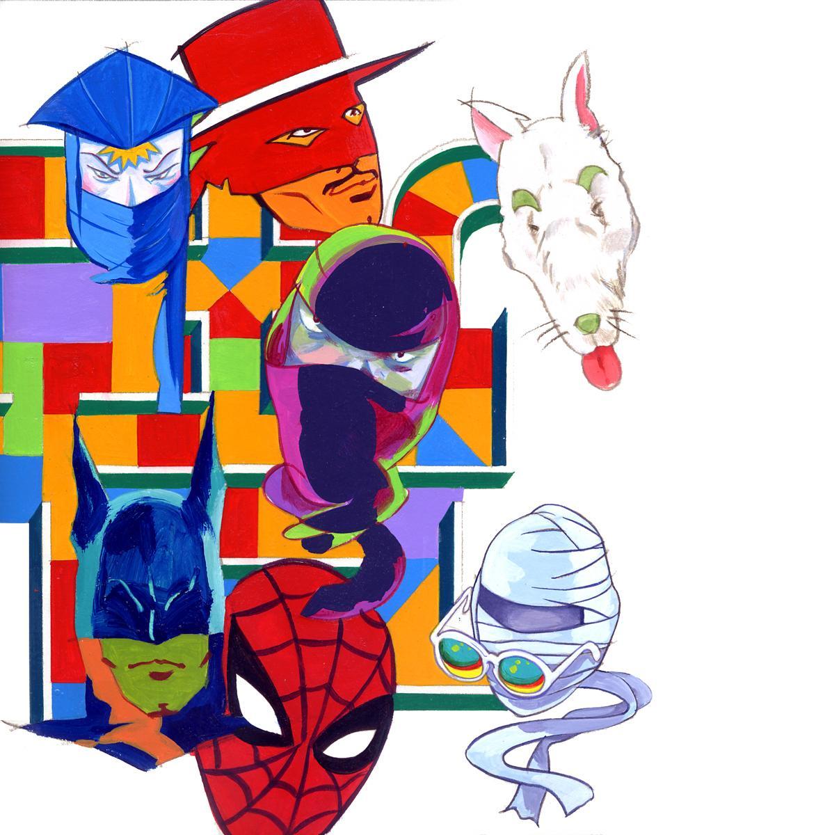かなりジンを飲んで、良いが回っていたけれど、何を描く構想も無いのに、手が勝手に子供の頃に読んだ少年雑誌のヒーロー達を次々と描いて居た。