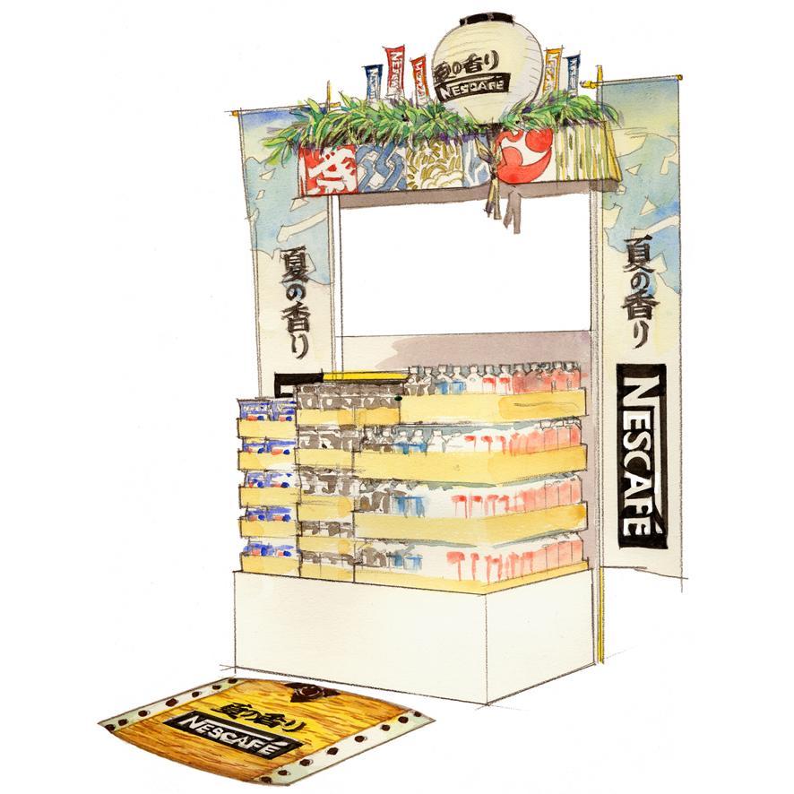 こうしたスーパーマーケットでのキャンぺーンの構想と同時に絵面を描く。