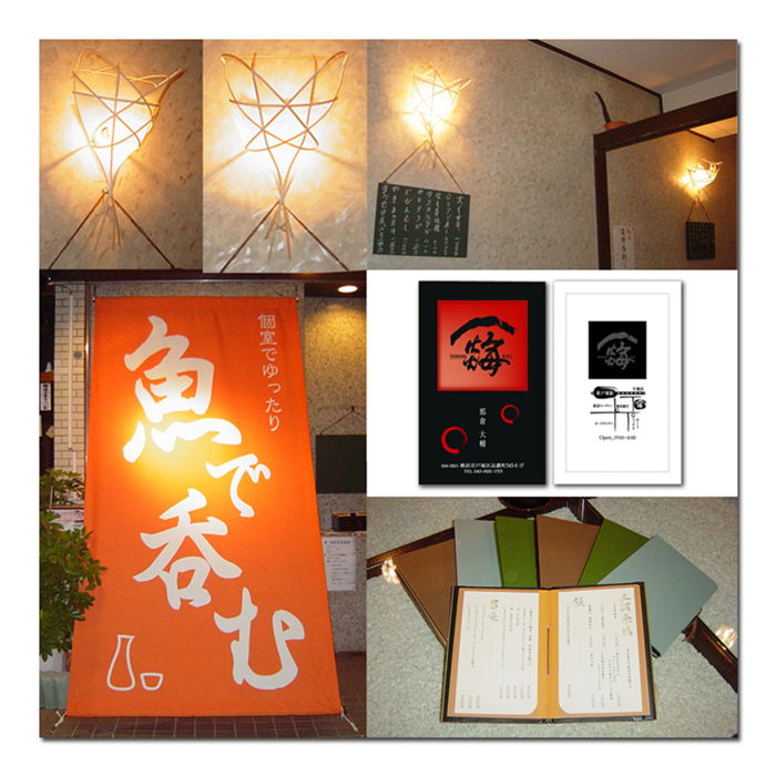 店舗(間接照明・幕・メニュー・ロゴ・名刺)
