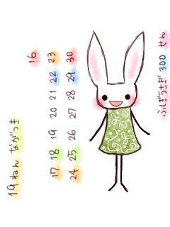 9月の待ち受けです。ふしぎうさぎ300選の思い出をもう一度!後半のカレンダ付き。大きさは、240×320。