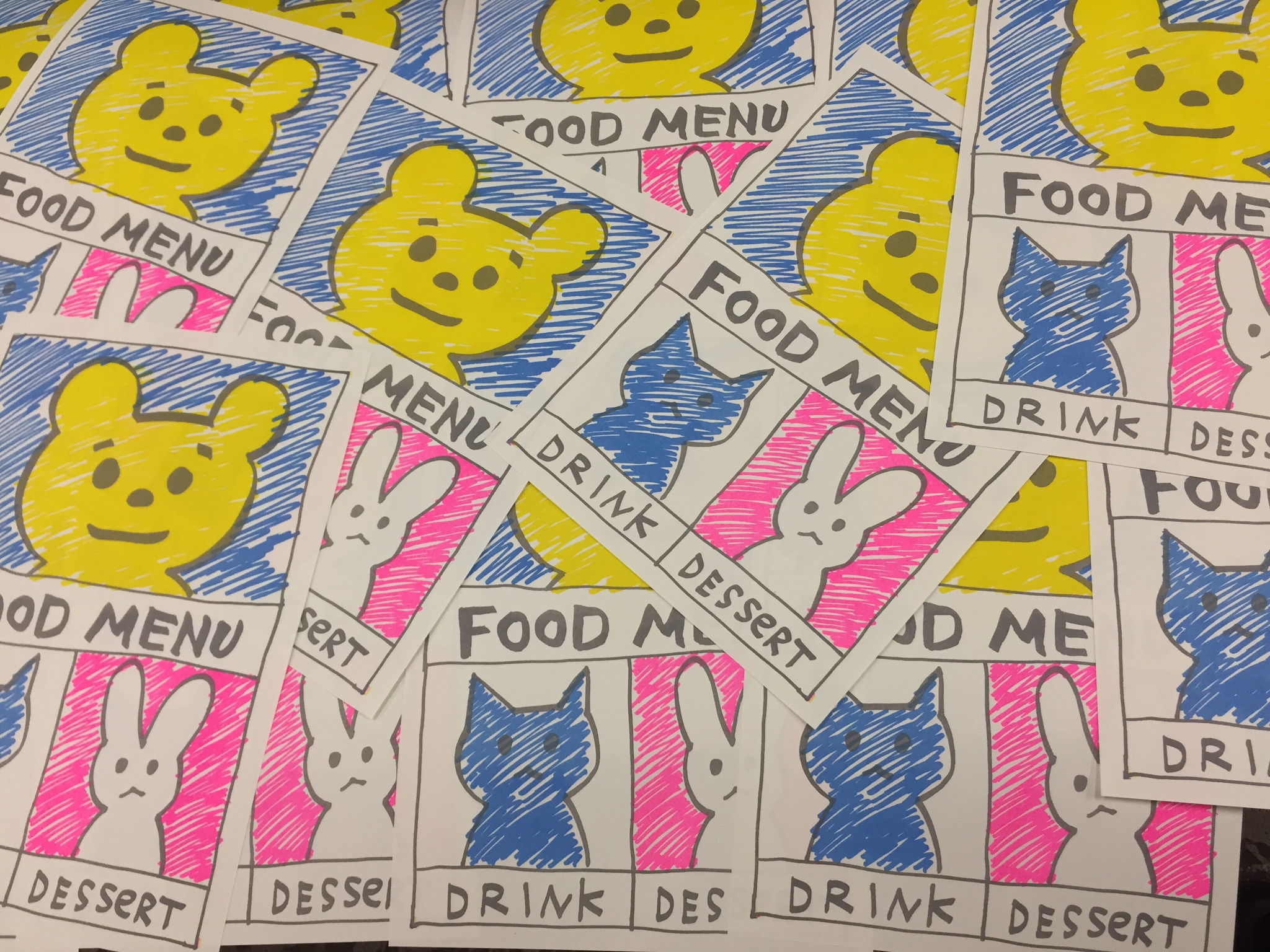 子どもたちの間で流行っているレストランごっこ用のメニューの表紙を考えてみました