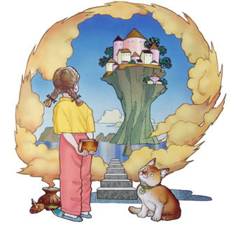 図書館の片隅で見つけた童話の本。ページをめくると、山頂のお城が見えてきました。