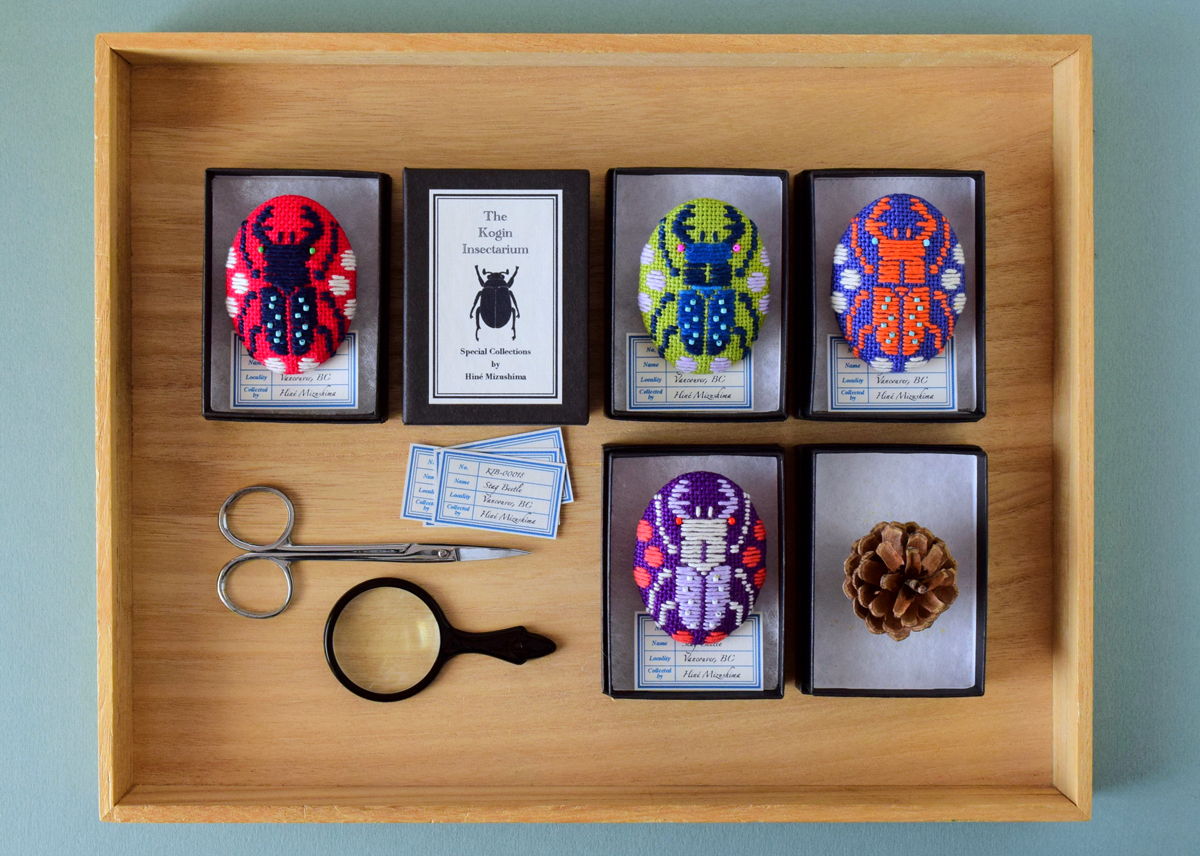 Some of my Kogin embroidered insect brooches for a group exhibition, The Kingdom of Specimens at ranbu gallery (2nd floor) in Osaka, Japan, opening June 20th!