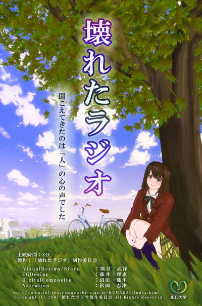 全編3DCGによって制作しました。CG技術や映像自体の完成度よりも小説や漫画のようにストーリーの展開を鑑賞者の感情移入という点を重視して制作しました。