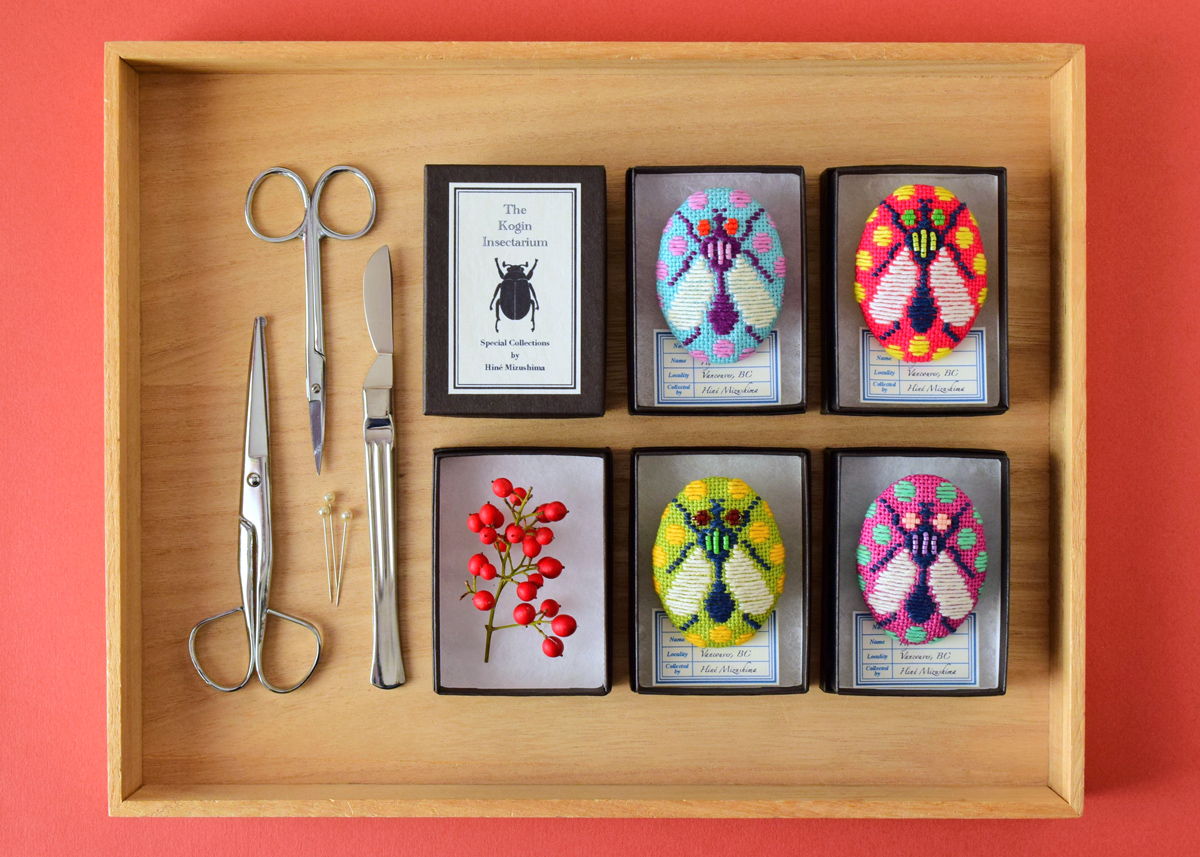 Some of my Kogin embroidered insect brooches for a group exhibition, The Kingdom of Specimens at ranbu gallery (2nd floor) in Osaka, Japan, opening June 20th!