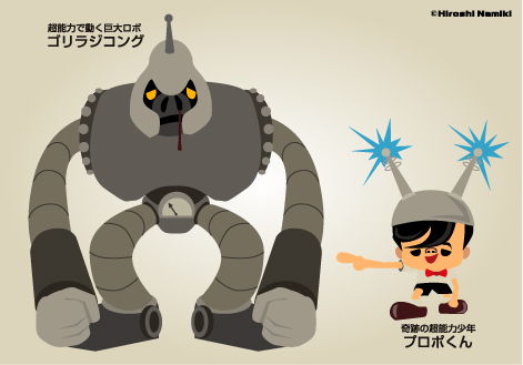 誰が、何の目的で作ったのかが謎な、超能力で遠隔操作できるゴリラ型巨大ロボ。奇跡の超能力少年プロポくんだけが、あやつることが可能。