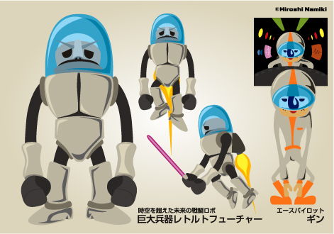 現代とは別の道を歩んだパラレルワールドの未来から時空を超えてやって来た、エースパイロットのギンが操縦する巨大戦闘兵器。未来を変えるために、巨大な悪を煮沸消毒しにきた。