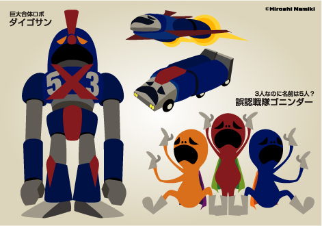 地球を守る秘密武装組織が作り出した合体ロボ。2つのメカが合体する、2人乗りの巨大ロボ。誤認戦隊ゴニンダーが乗り込む。しかしゴニンダーは3人組なので、必ず1人は乗れない。
