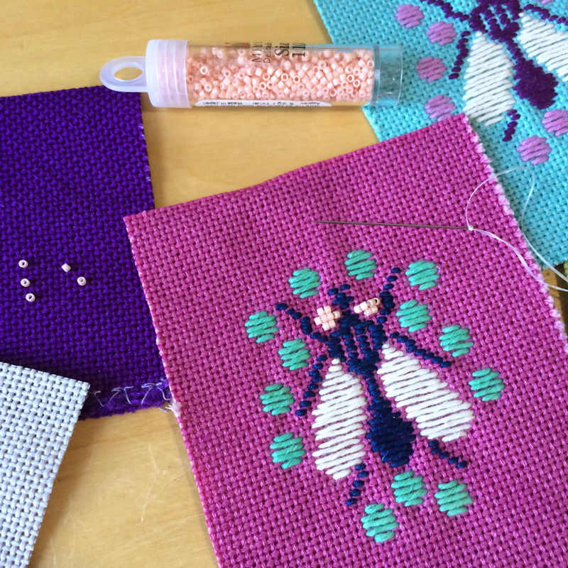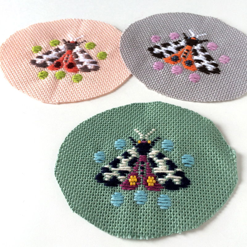 Kogin embroidered insect brooches for a group exhibition, The Kingdom of Specimens at ranbu gallery (2nd floor) in Osaka, Japan, opening June 20th, 2018!