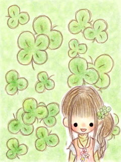 3月の待ち受けです。ブログデザインとおそろいになるはずだった、その1、よつば☆大きさは、240×320。