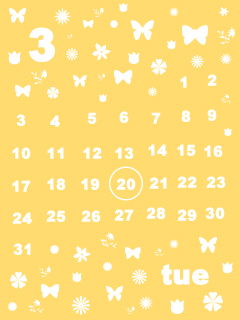 3月の待ち受けです。春爛漫?1ヶ月のカレンダー付き。大きさは、240×320。