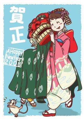 技術評論社様刊 2008年「ほのぼのおしゃれ年賀状 ねずみどし版」イラスト