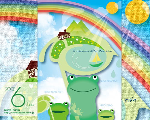 今月はカエルさんの頭上に広がるお家をメインにした可愛らしい絵になってます。