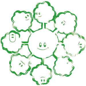 太陽と木の共存をイラストで表しました。サムネイルに入りませんでしたが下には手描きっぽい字でGreen Powerと元気に入れてあります。