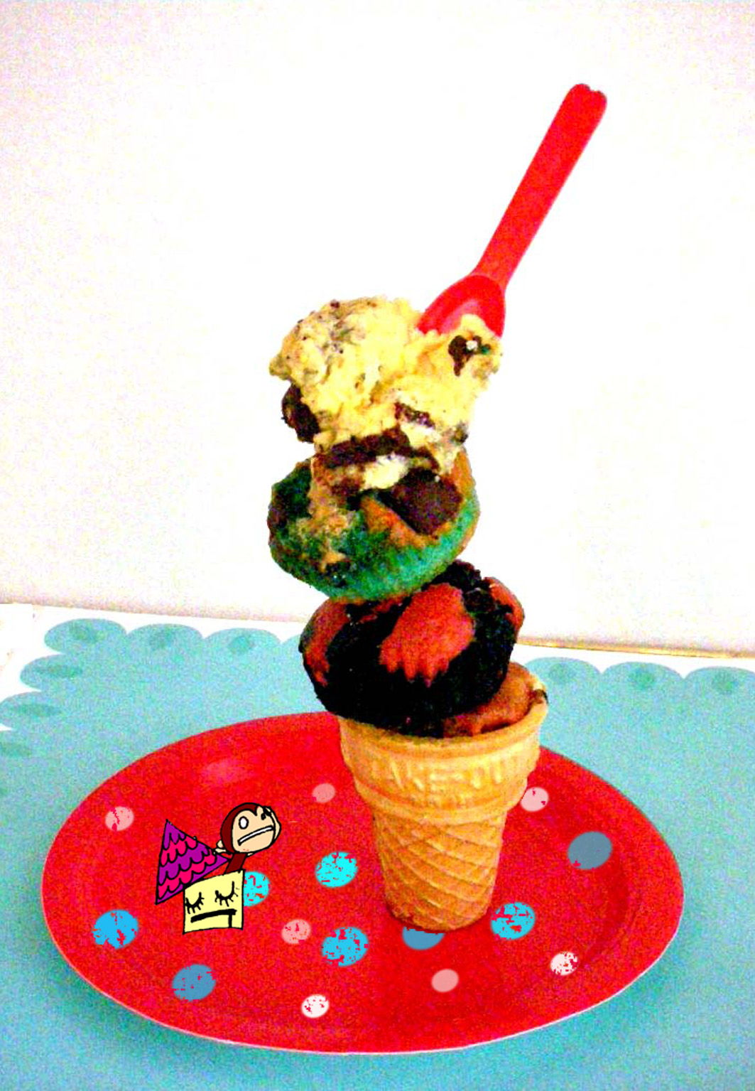 【KiMo;ama】キモくて甘いお菓子だけども、え?コレ食えんの??って思ってしまったお前もかなり甘いんだよ展/じょぼ個展@Lav(恵比寿)のDMとしても使った作品。マフィン&スコーンのアイス