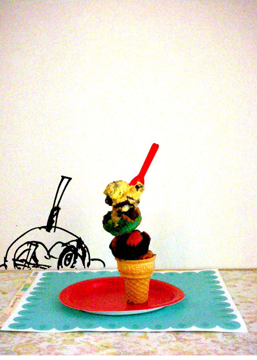 KiMo;ama】キモくて甘いお菓子だけども、え?コレ食えんの??って思ってしまったお前もかなり甘いんだよ展/じょぼ個展@Lav(恵比寿)のDMとしても使った作品。マフィン&スコーンのアイス