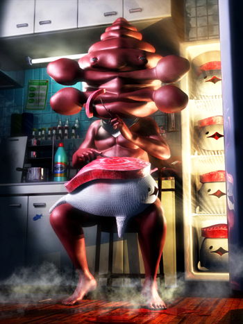なんと彼は台所でステーキを食べている最中だったのだ。