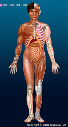 省略された模式図です。実際の人体構造と異なる部分や表現が有る事を予めご了承下さい。