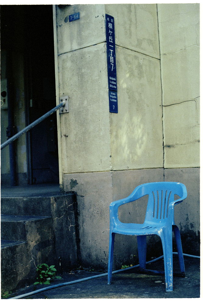 ブルーの手すりに、ブルーホース。そしてブルーに塗られた椅子。偶然と思いたくない私は団地に足しげく通う。