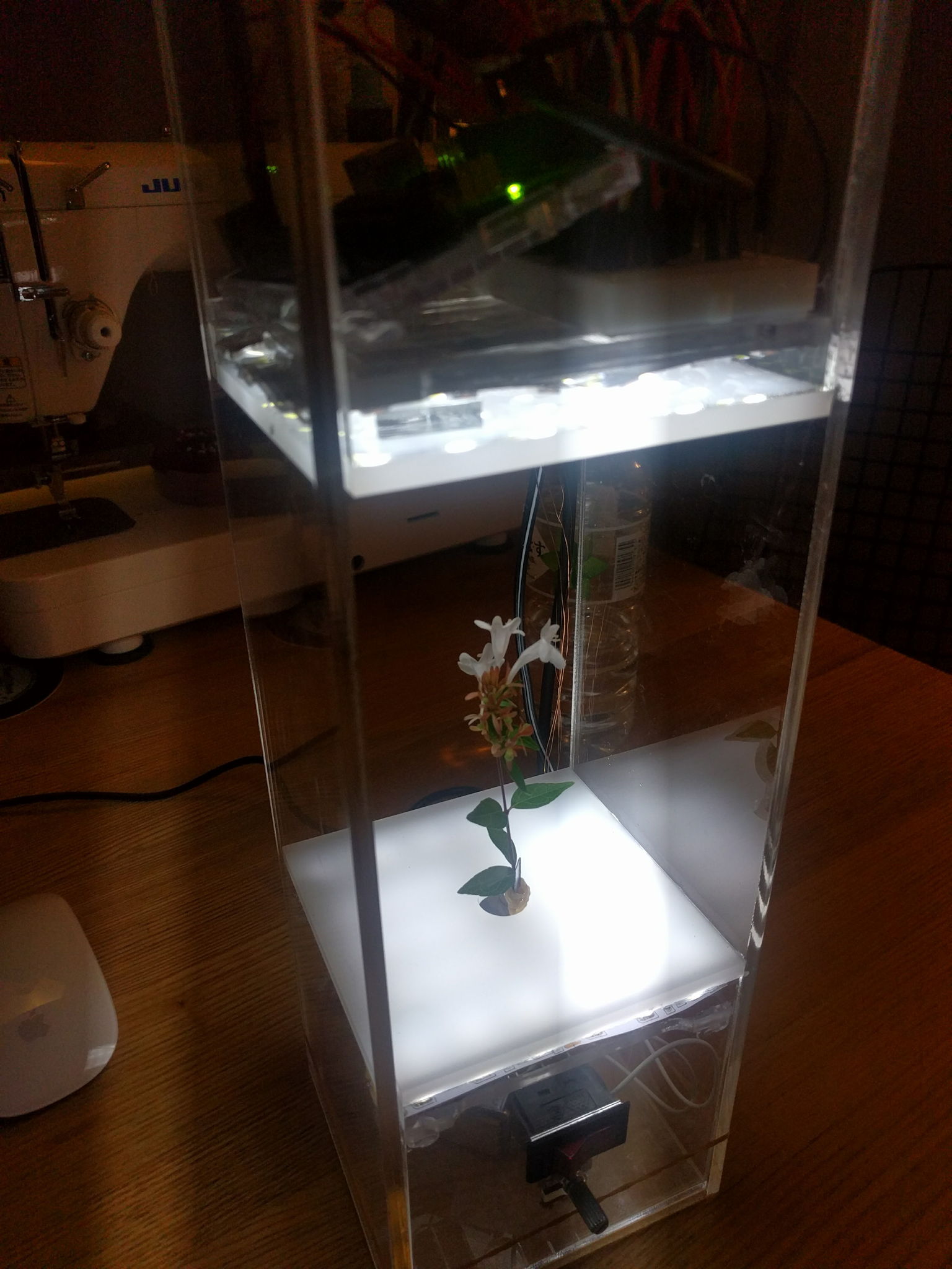 Machine that 'slows down' vibrated plant body using the video technology called zoetrope. Strangely enough, this 'slowed down' image resembles the 'speeded up' image of plant's autonomous movement such as glowth that could not been seen by human eyes. This insight took me to the journey of speculation for the "movement of plants" that desolved my whole perspective toward plants, animals, furthermore, the life.