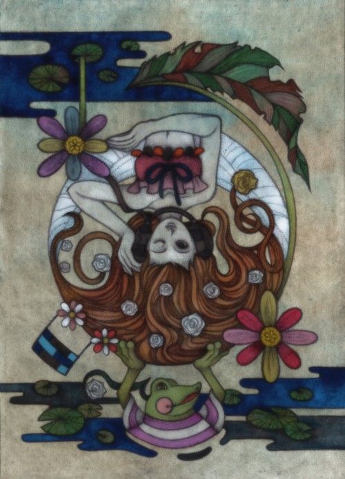 オリジナル アナログ イラスト デザイン 少女 水彩 動物 植物 蛙 音楽
