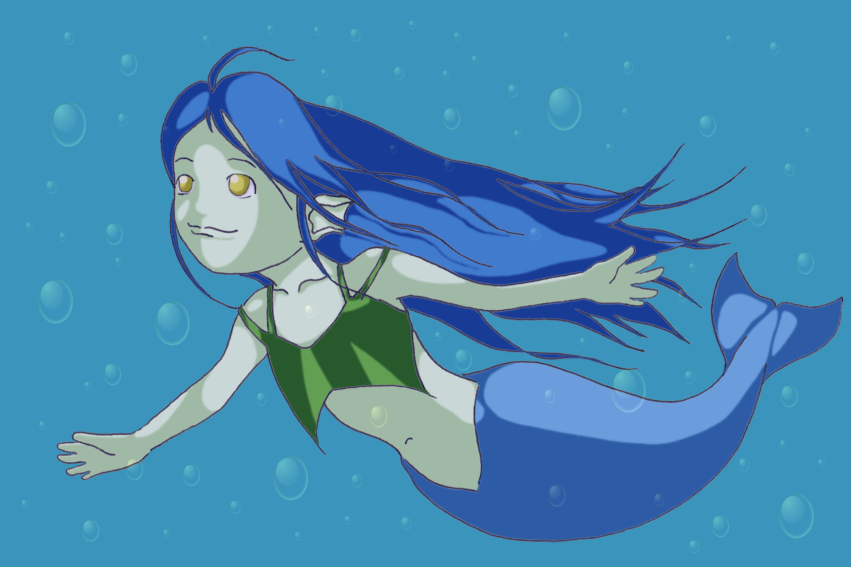 今まで何度も「人魚」を描きましたが、やっとイメージ通りの「人魚」が