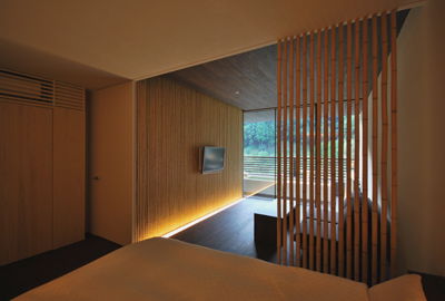 そうすることで露天風呂が来客にとって居間に変わる部屋となり、