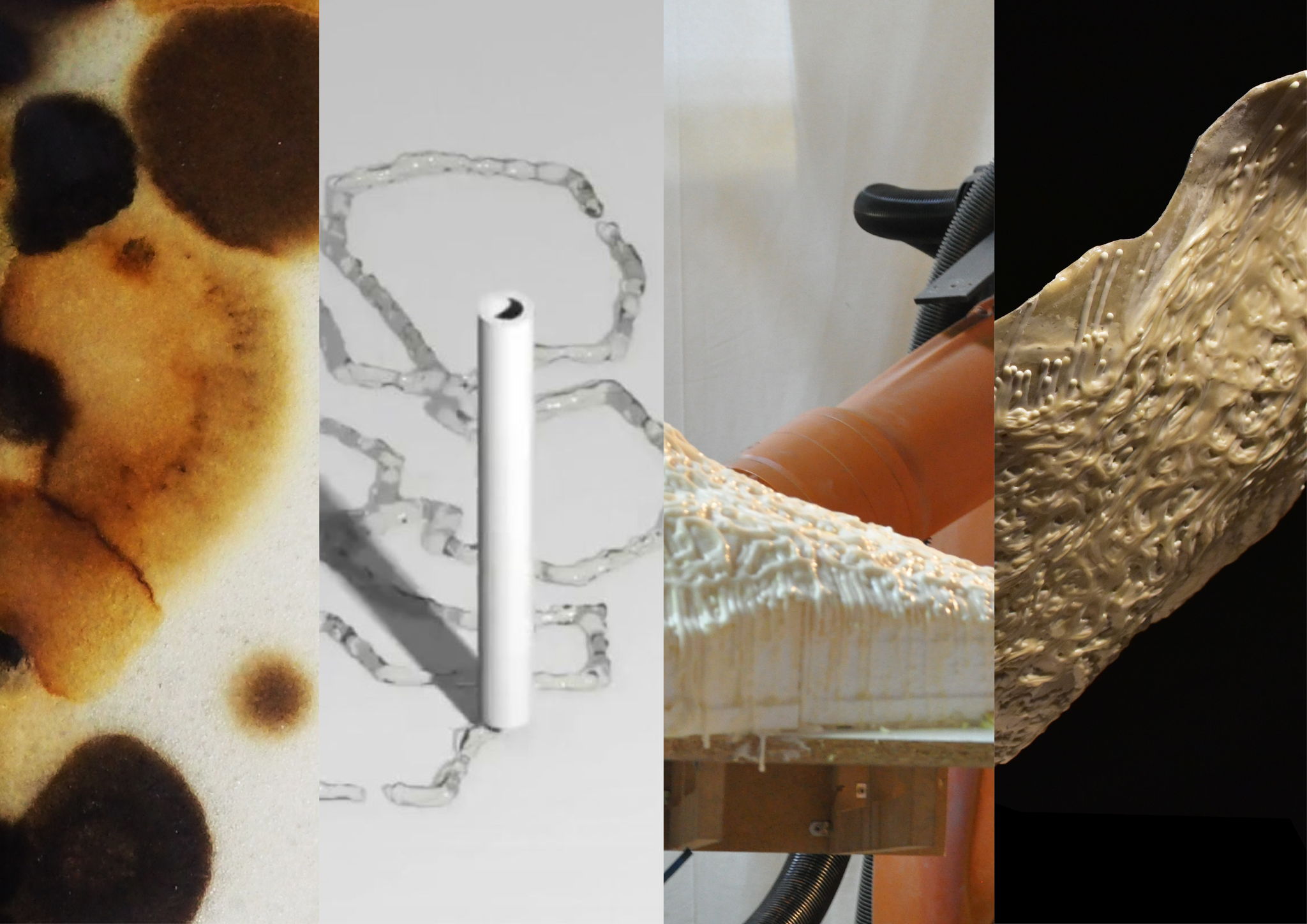 This research explores the use of mixed bioplastic foam composites as scaffolds for species to proliferate inside and around the material by contamination, using the contact with the human body to create a unique pattern by the fungi growth following the traces of the human body path on the mold. These material properties have been explored through the chair design using the power of computational tools through nature-inspired methodology, in order to promote the interaction between user and material in the way that the material is contaminated by the human body. As a result, the structure of the material has been reinforced by the growth of fungi, expanding into a porous layer of the material. Simultaneously, the material appearance changes due to the colonization of different species, depending on the different environments that the human body was exposed to. Moreover, the fabrication methods have been explored by an additive manufacturing process using 6 axes robotic arm to produce a 1:1 furniture scale.