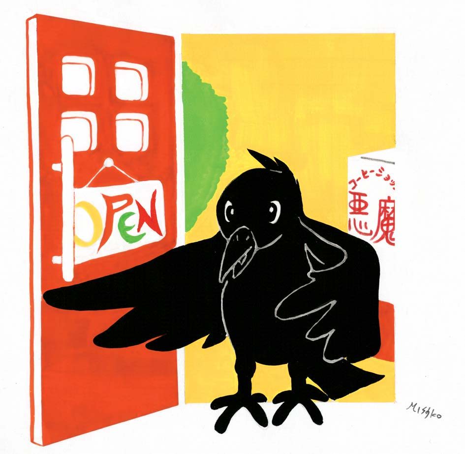 悪魔が経営している「コーヒーショップ悪魔」に訪れるカラス。