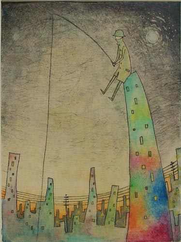 銅版画。①「釣り人」