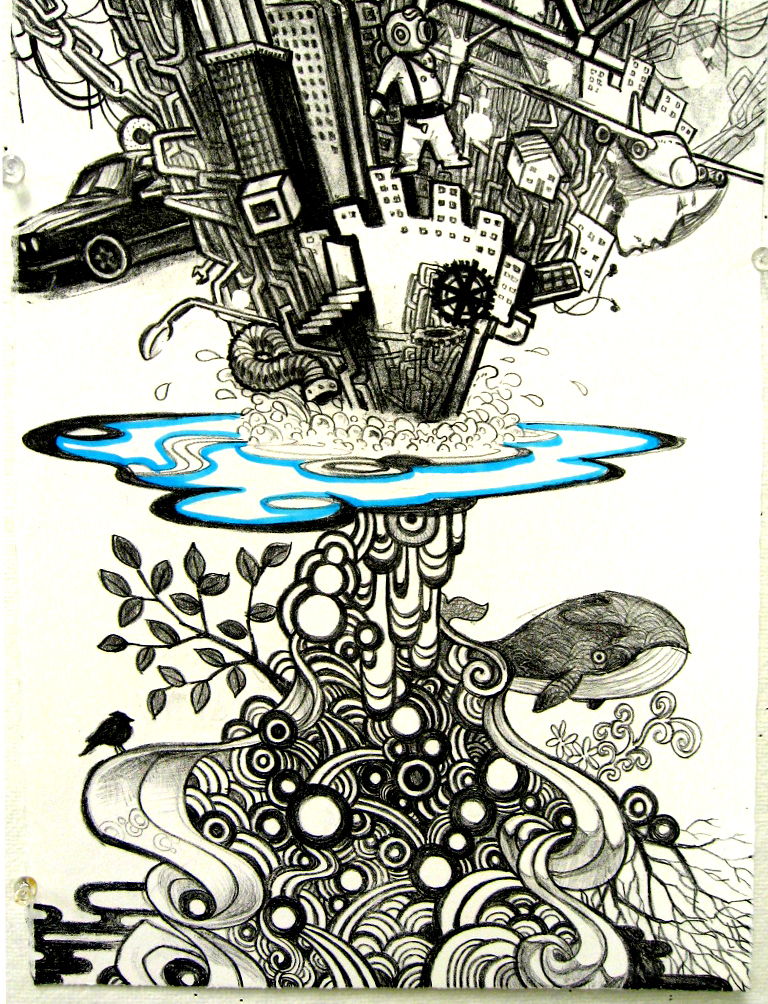 「逆浸透」という意味のタイトルです。版画授業作品です。