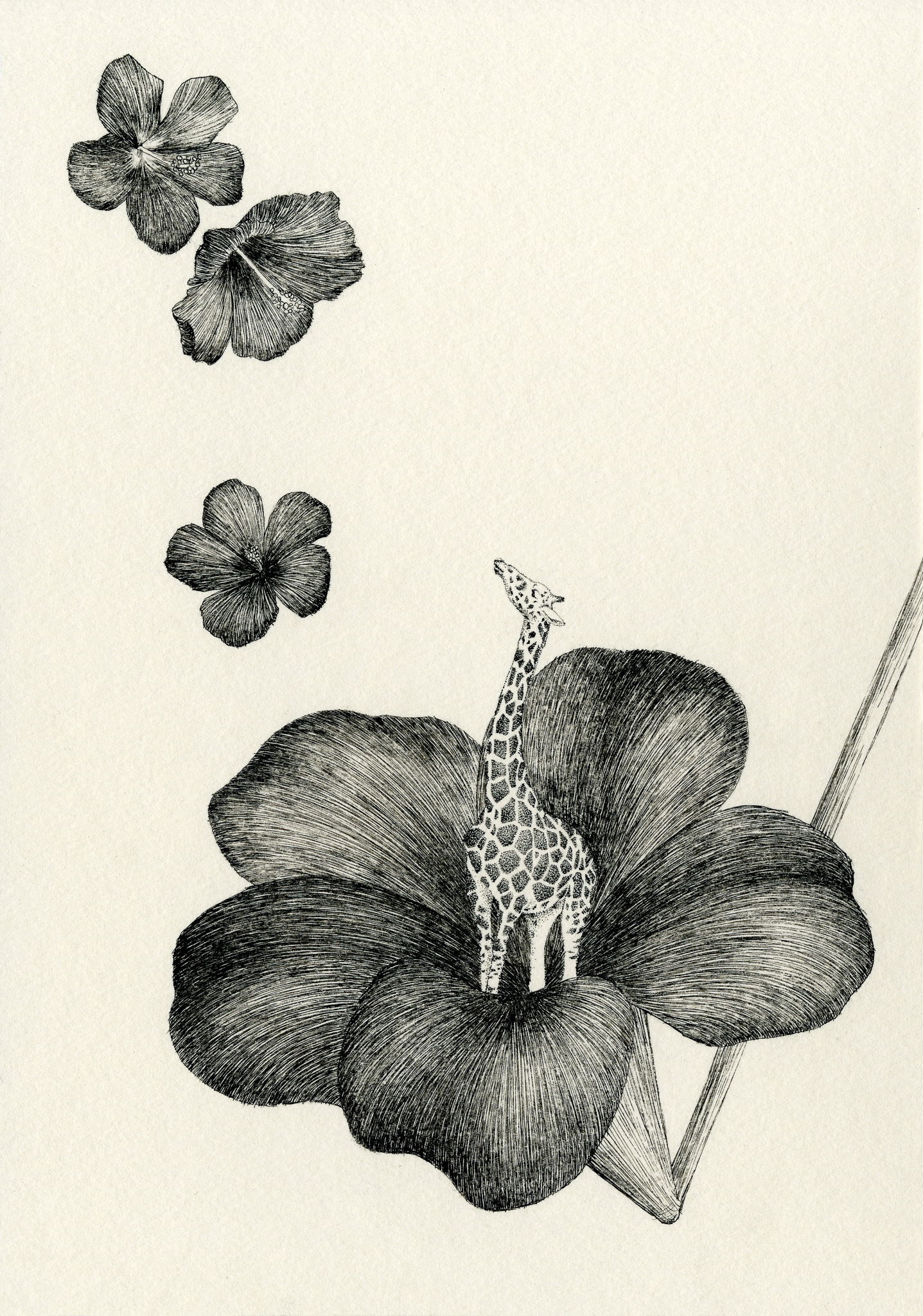 ユーモアをテーマにし, ペン画で作成。動物と植物は自然界の中で常に共存し, お互いなくては成り立たない大切な存在である。その双方を組み合わせ一体化させる事で, 自然界の不思議さや, 自然の美しさ, 儚さ, 素朴さ, などを感じさせるユーモラスな世界を表現した。