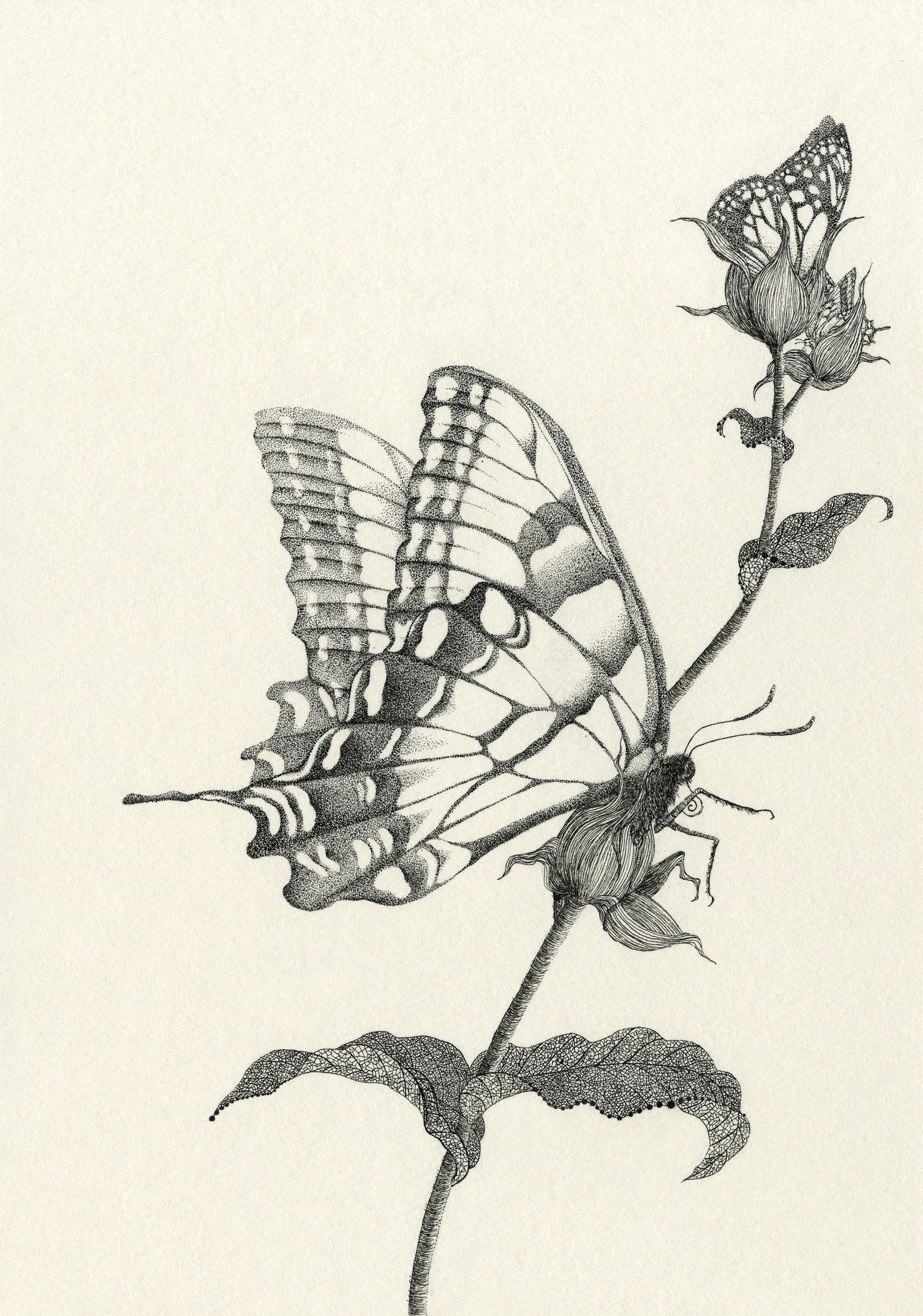 ユーモアをテーマにし, ペン画で作成。動物と植物は自然界の中で常に共存し, お互いなくては成り立たない大切な存在である。その双方を組み合わせ一体化させる事で, 自然界の不思議さや, 自然の美しさ, 儚さ, 素朴さ, などを感じさせるユーモラスな世界を表現した。 2008年 B5 182×257 mm