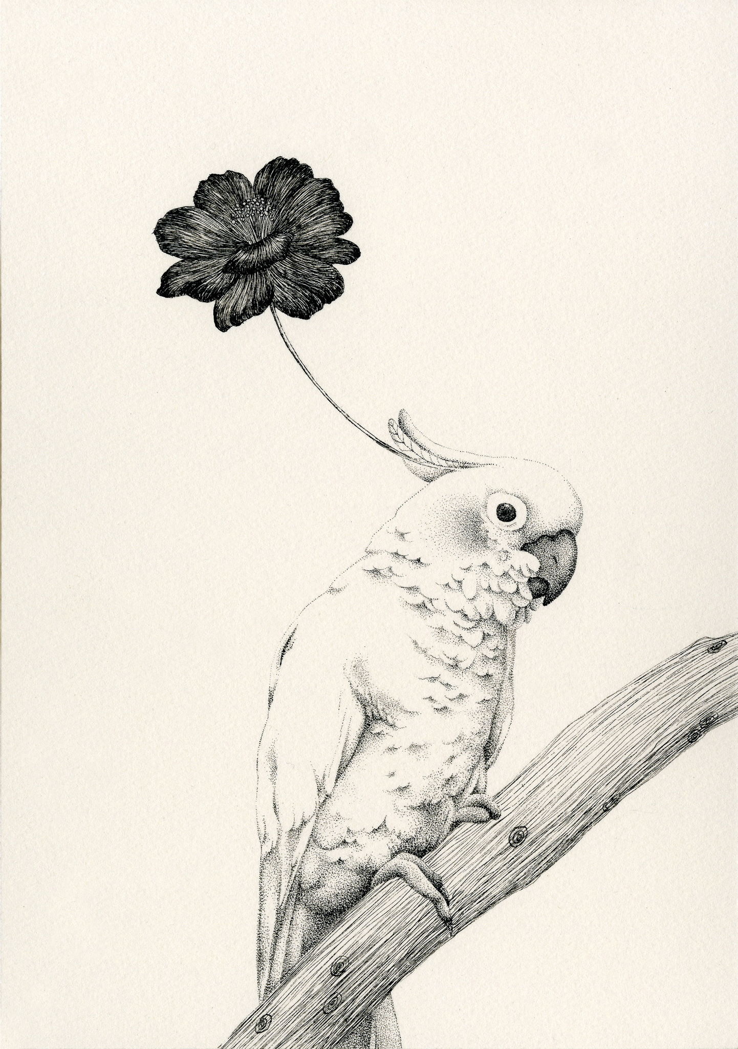 ユーモアをテーマにし, ペン画で作成。動物と植物は自然界の中で常に共存し, お互いなくては成り立たない大切な存在である。その双方を組み合わせ一体化させる事で, 自然界の不思議さや, 自然の美しさ, 儚さ, 素朴さ, などを感じさせるユーモラスな世界を表現した。 2008年 B5 182×257 mm