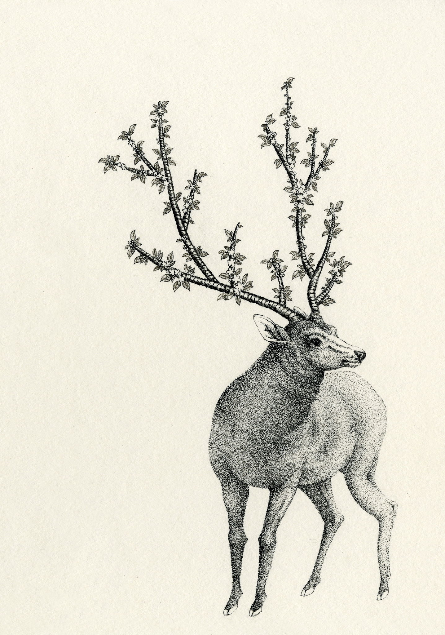 ユーモアをテーマにし, ペン画で作成。動物と植物は自然界の中で常に共存し, お互いなくては成り立たない大切な存在である。その双方を組み合わせ一体化させる事で, 自然界の不思議さや, 自然の美しさ, 儚さ, 素朴さ, などを感じさせるユーモラスな世界を表現した。 2008年 B5 182×257 mm
