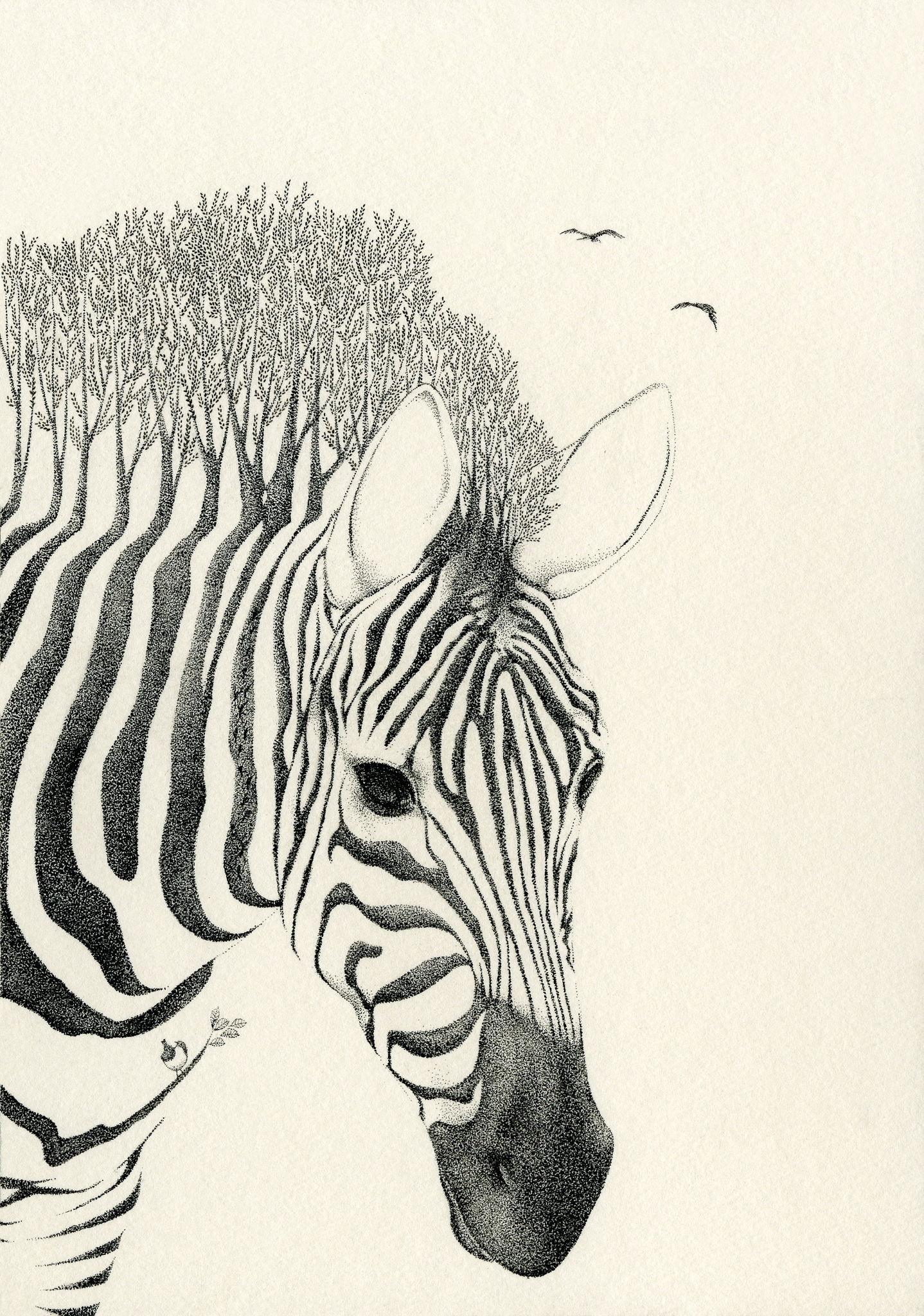 ユーモアをテーマにし, ペン画で作成。動物と植物は自然界の中で常に共存し, お互いなくては成り立たない大切な存在である。その双方を組み合わせ一体化させる事で, 自然界の不思議さや, 自然の美しさ, 儚さ, 素朴さ, などを感じさせるユーモラスな世界を表現した。 2008年 B5 182×257 mm