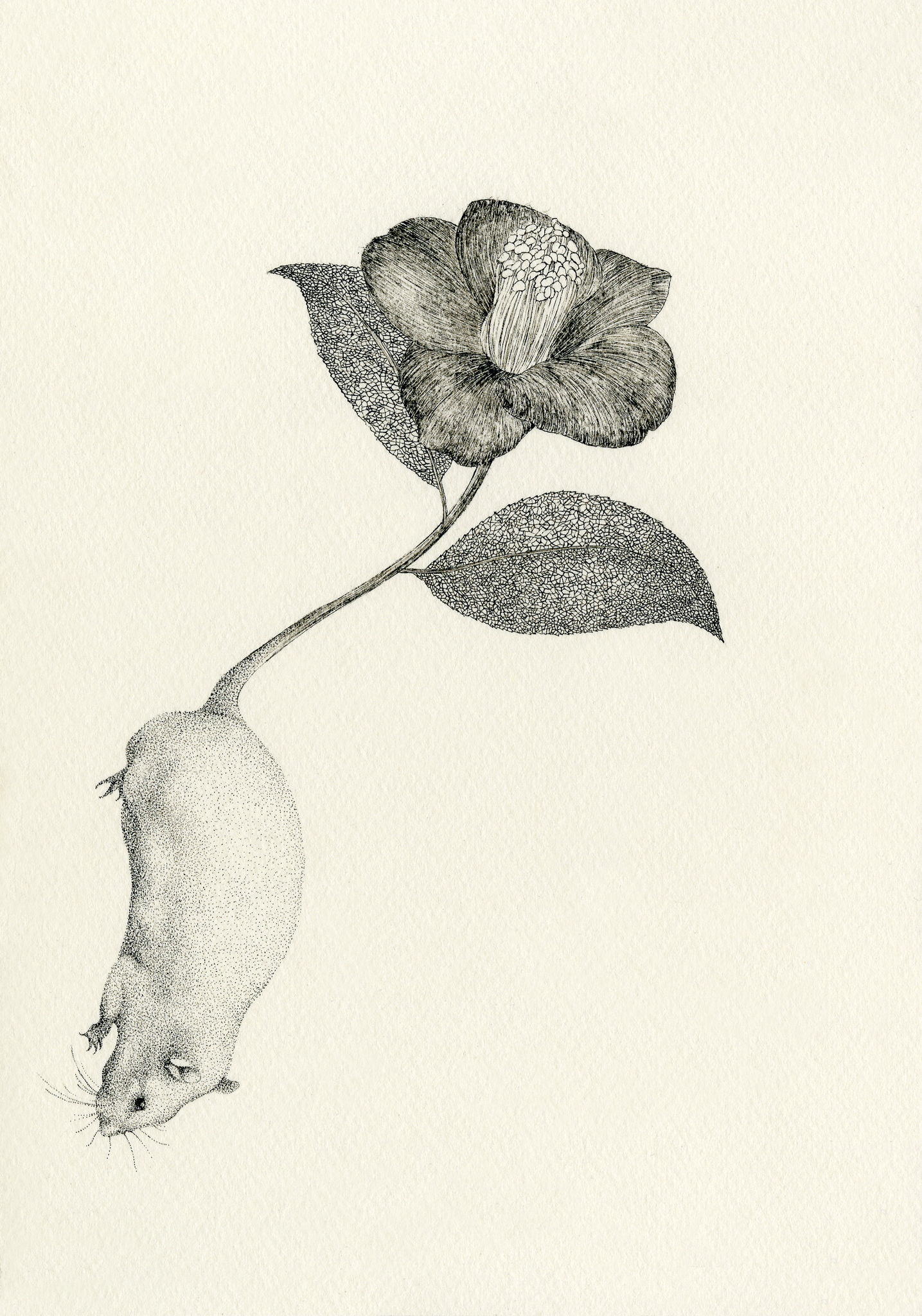 ユーモアをテーマにし, ペン画で作成。動物と植物は自然界の中で常に共存し, お互いなくては成り立たない大切な存在である。その双方を組み合わせ一体化させる事で, 自然界の不思議さや, 自然の美しさ, 儚さ, 素朴さ, などを感じさせるユーモラスな世界を表現した。 2008年 B5 182×257 mm
