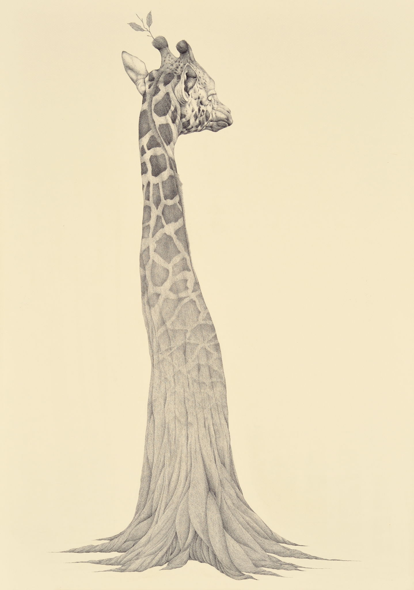 動物の持つそれぞれの特徴と, その動物のイメージ, 双方を組み合わせて表現した。「麒麟」2008-2009年 B2  515×728mm