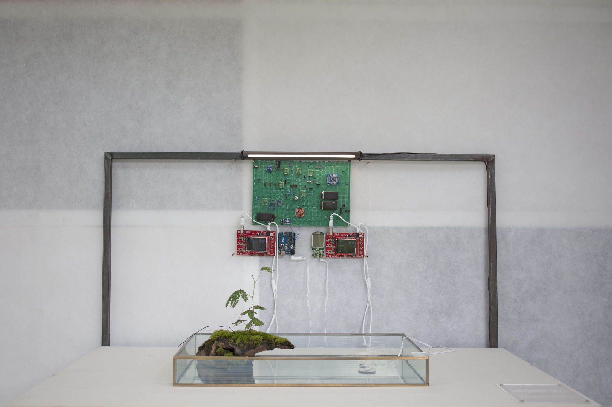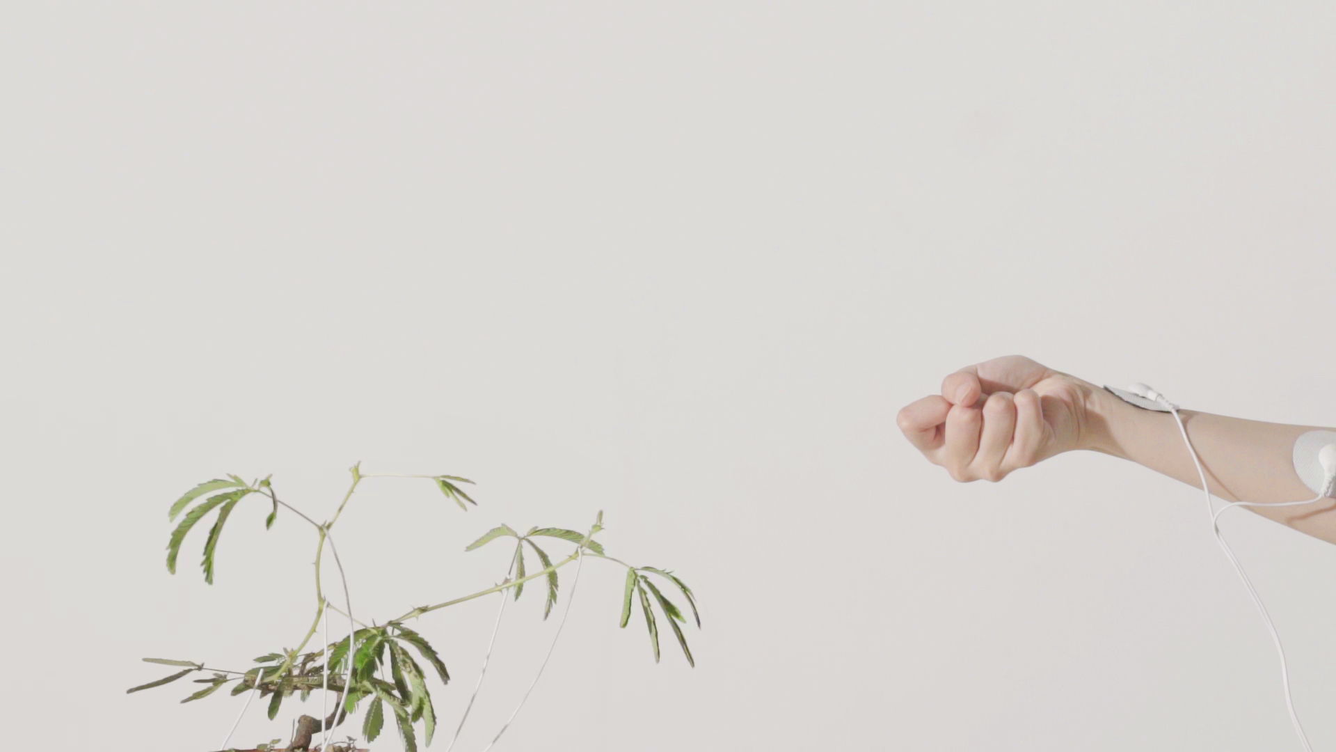 “Syn-thesasia” is the bridge between human and plant. The communication concept is similar to that of empathy. As the leaf cushion is connected to human muscle system, trace movement of the leaf can be detected and transferred to human muscle. The moment the mimosa is stimulated, human can feel the tactile and pain from the plant, and the arm will respond like the mimosa.