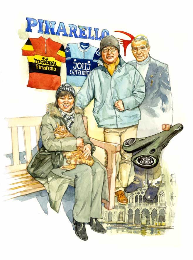 出入りの自転車店店主はイタリアによく出かける。イタリアの有名な自転車メーカーを訪問したりするが,たいていは個人的な旅行である。