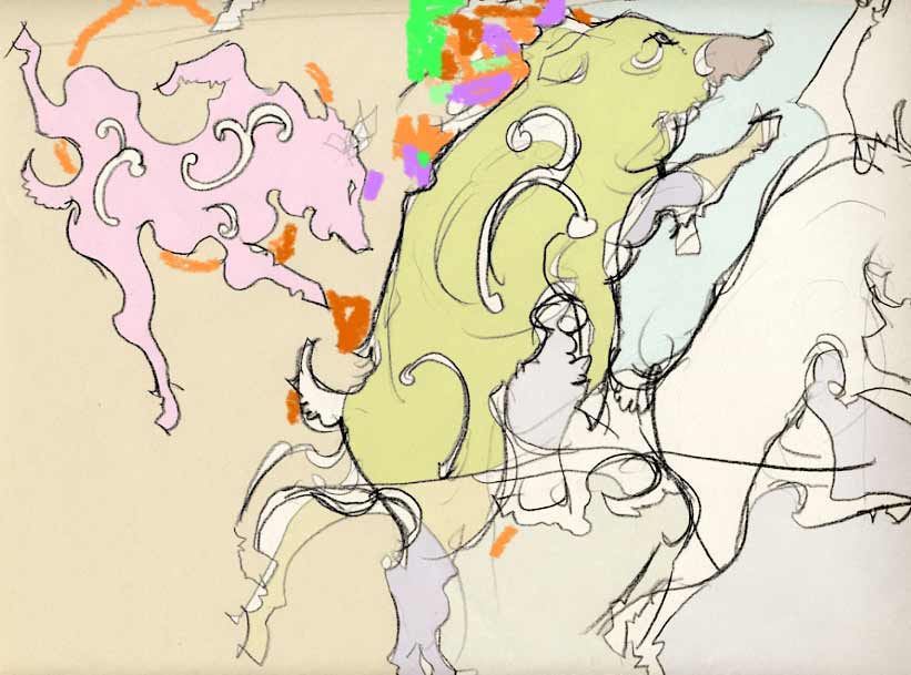 行灯のデザインの為にどうぶつをいろいろ描いた。