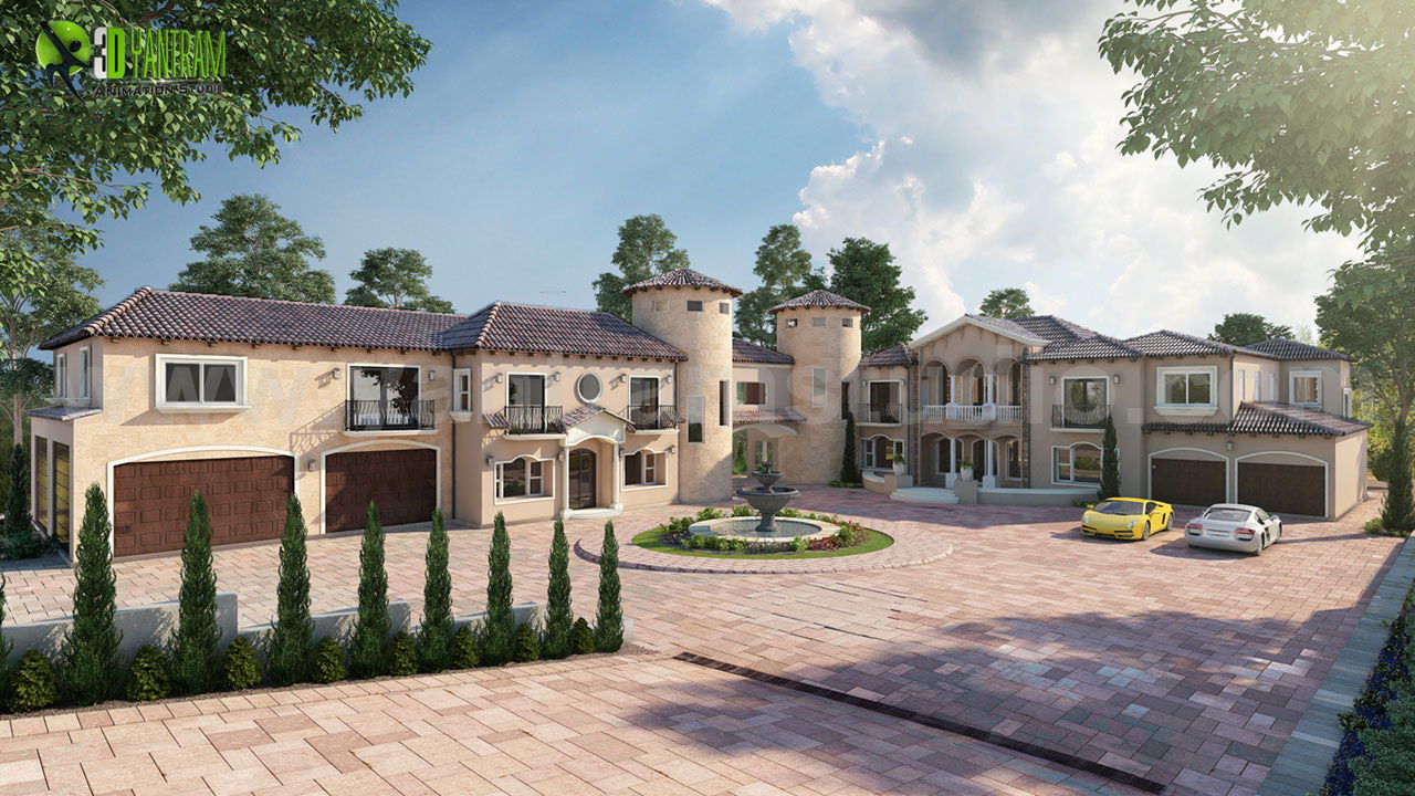 Ultra Semi-Modern Villa Exterior Design Ideas by Yantram 3d exterior rendering New jersey, USA