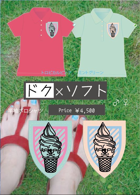 ポロシャツ。どくろソフトクリームのワッペンが縫い付けてあります。
