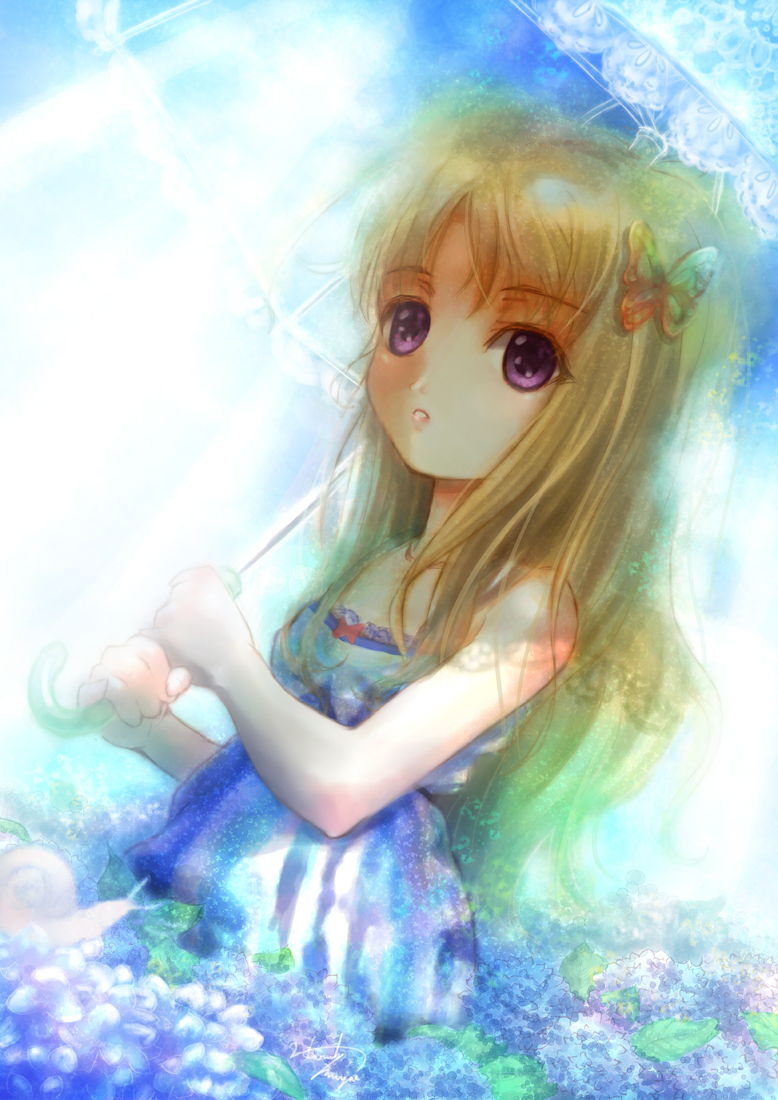 辺り一面に綺麗な紫陽花が咲いている…。  ■今回は若干水彩風の絵にしてみました。それっぽい雰囲気が出てるといいなと思います。