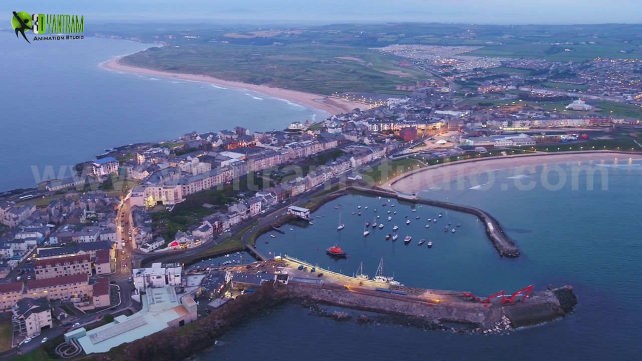 Modern Apartments with Unique Interior & Exterior Design Ideas with an Outstanding Night View of entire site. Modern Infrastructure with Latest Designing, Dining Room with Awesome Outview, Hall in Lamp & Painting with Great look, Kitchen and Living Space, Sweet & Simple Bedroom Design, Balcony with attractive Sea View, Unique Bathroom Design with Mirror, Paintings, Modern Sink - Walkthrough Animation and concept Ideas Developed by Yantram 3D Flythrough - Walkthrough Visualization in London, UK.