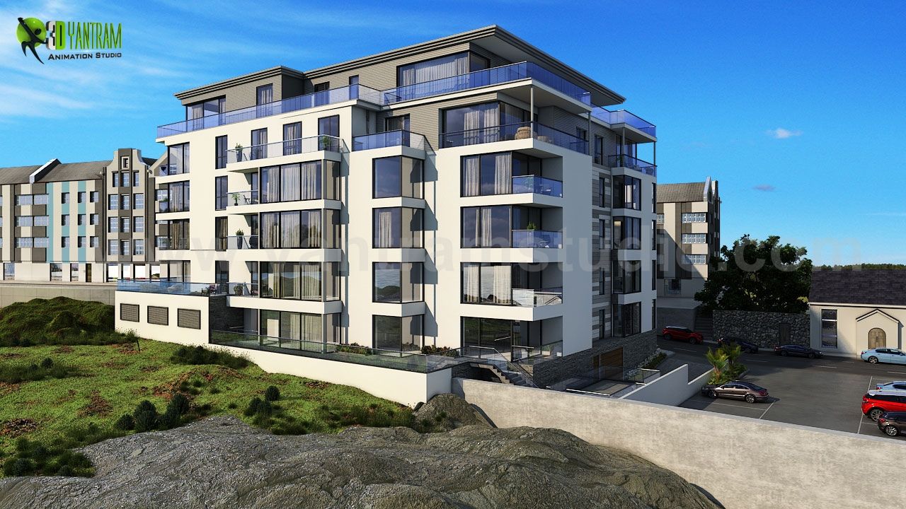 Modern Exterior Apartments with Residential Interior Unit Design Ideas by Yantram3D Walkthrough Presentation, London - UK