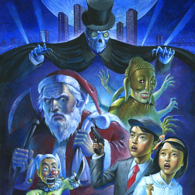 江戸川乱歩の少年探偵団っぽい感じで描きました。