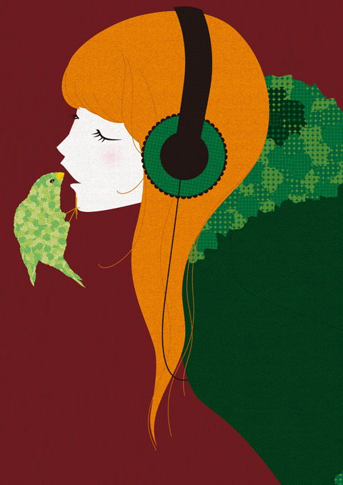 アニメーション作品「鳥と恋人」のためのイラストレーション。
