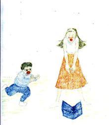 かかってきた電話に腹をたてて、お土産に当り散らす梨香子。