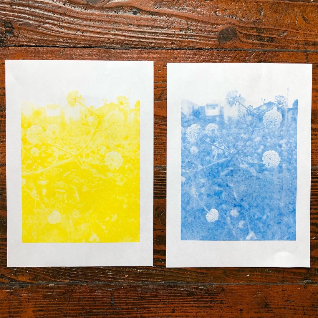 PhotoshopでCMYK分版したデータのCYK版のみをつかって、3色で印刷した習作です。